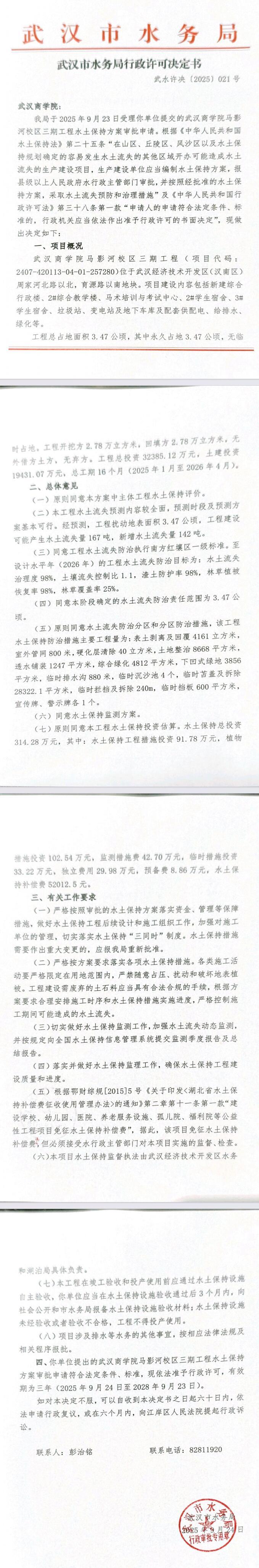 武汉商学院行政许可决定书 武水许决〔2025〕第021号