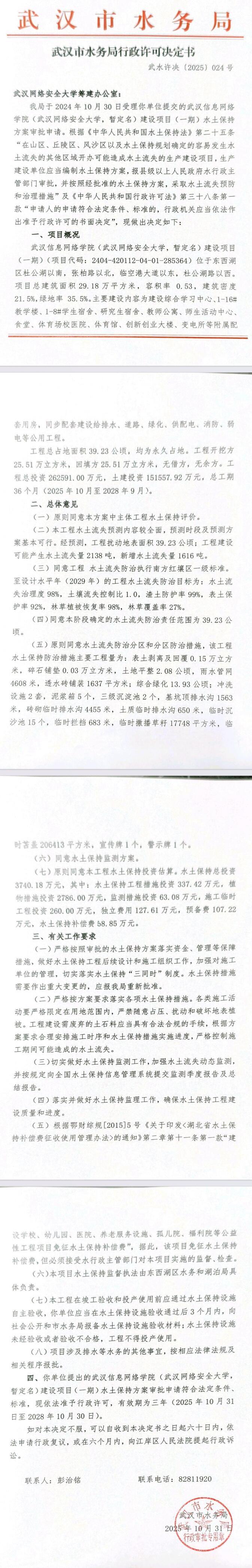 武汉网络安全大学筹建办公室行政许可决定书 武水许决〔2025〕第024号