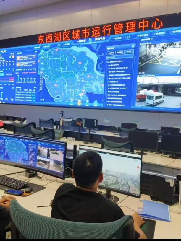 在东西湖区城市运行管理中心(下称区城运中心),屏幕上实时显示区内各路段的视频监控,各类雨情、水情、渍情、汛情、工情等信息和数据一目了然。