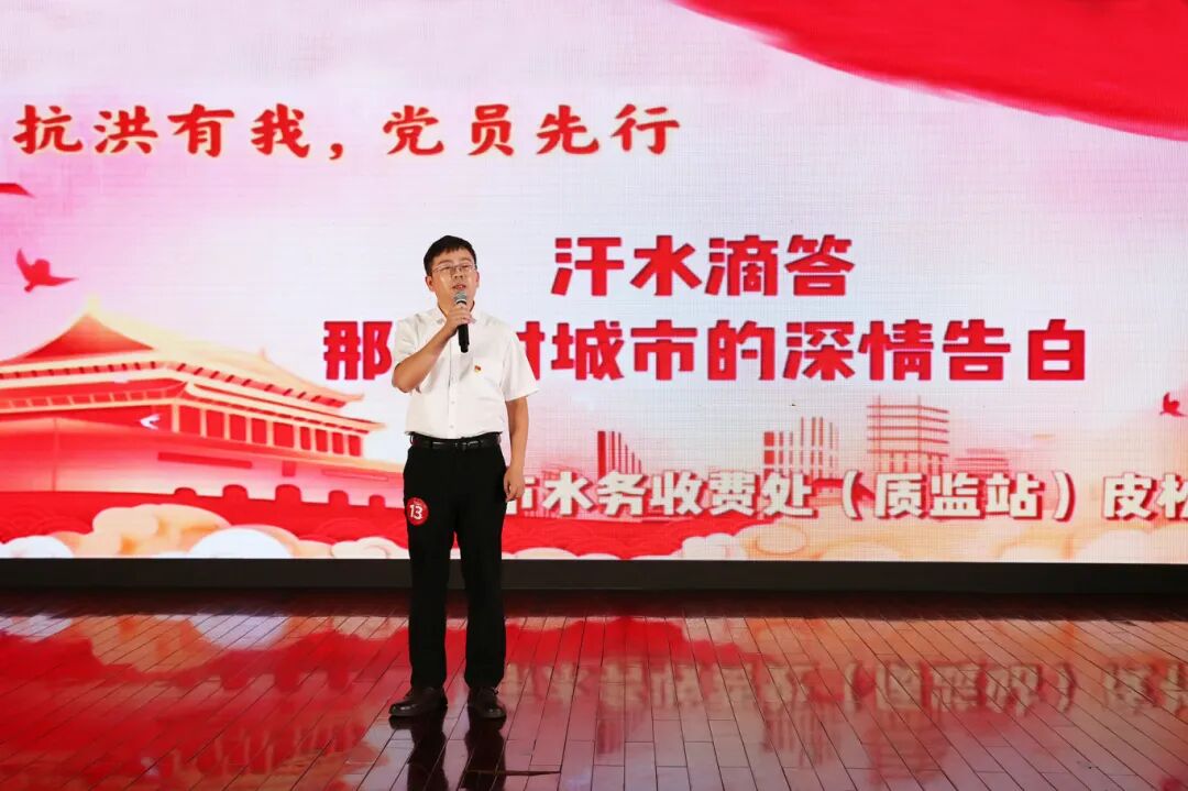 朋友们,当我们站在长江边,看浪花奔涌向前,那是历史对我们的召唤:让我们以先辈为灯,用青春作桨,在水务工作的浪潮里,做奔涌的后浪!抗洪有我,因为我是党员;江河安澜,因为青春向党!