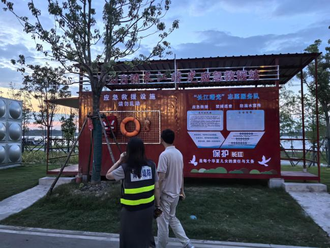 江滩全域开展“地毯式”隐患排查,配套升级219个高清监控摄像头,实现水域全覆盖;90余套“四个一”救生装备按标准布设;200多处警示宣传牌突出未成年人防溺重点,夜间警示灯和声光喊话器在傍晚后自动启动,形成“白天看得到、晚上听得见”的全天候提醒网,让安全保障时刻在线。