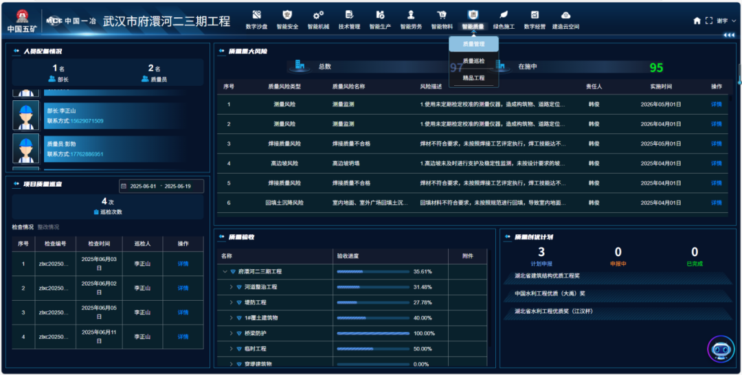 质量管控:移动端与PC端双平台联动,实现质量巡检在线化、验收数据实时化,大幅度提升检查和整改闭环效率。