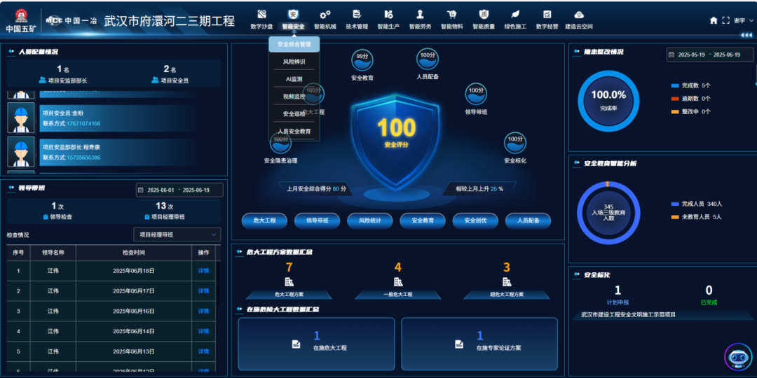 安全防控:部署AI视频监控系统,自动识别人员未佩戴安全帽、违规闯入危险区等行为;通过塔吊监测、深基坑传感器与VR安全培训,构建“智能预警-仿真演练-应急响应”一体化安全防线。