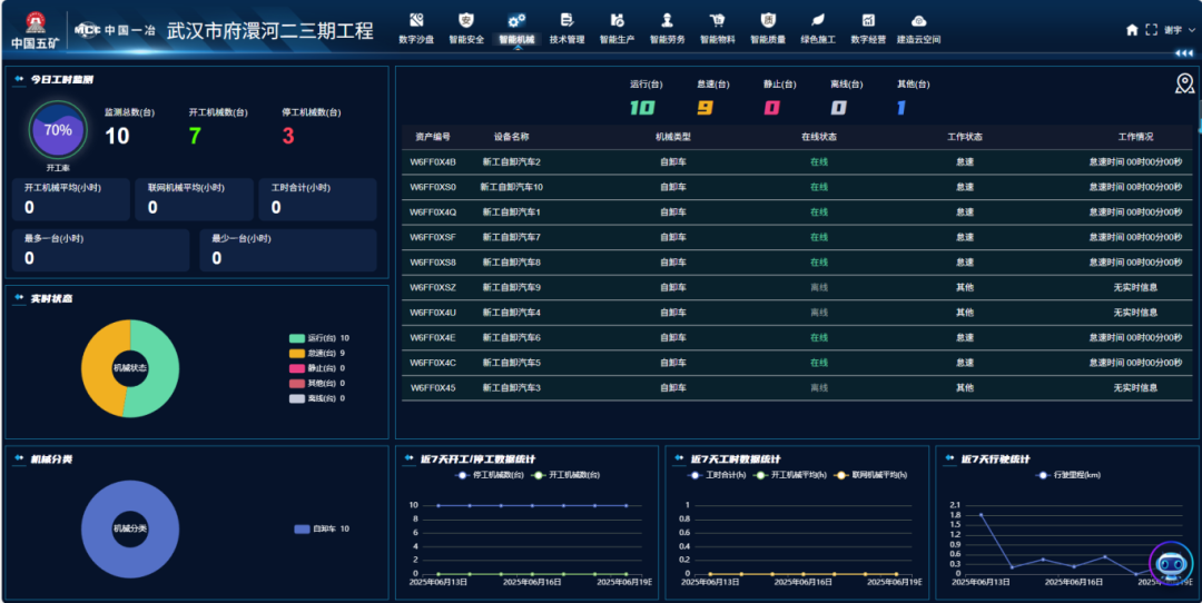 机械管理:物联网技术实时采集设备工况、运距及油耗数据,动态优化机械调度与运输路线,为项目的土方运距数据统计,经营决策提供了可靠的数据支撑,最终形成运距收益。