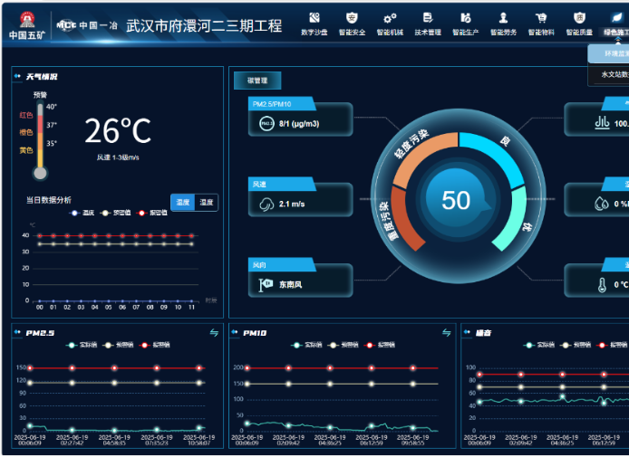 一是强化扬尘治理,采用智能喷淋系统、雾炮机及围挡喷雾装置,配合裸土全覆盖,确保PM10的24小时平均浓度<150ug/m3,PM2.5的24 小时平均浓度<75ug/m3;