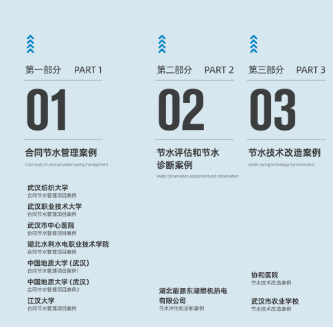为深入贯彻国家节水行动,全面推广合同节水管理等创新模式,近日,市节水办正式发布《亚洲体育博彩平台优秀节水服务案例选编(2025年版)》(以下简称《案例选编》)。该书以“可复制、可推广、可持续”为导向,遴选汇编了近年来全市最具代表性的15个节水服务项目,涵盖高等院校、医疗卫生、工业企业等多个重点用水领域,为全市乃至全国节水工作提供了“武汉经验”和“武汉方案”。
