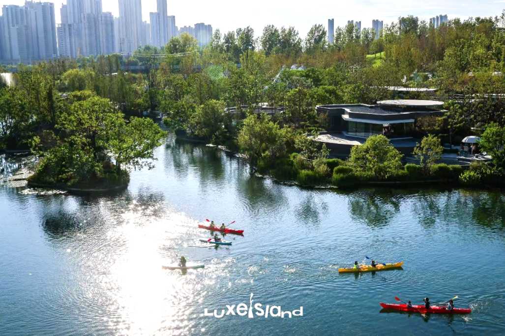 治理后的朱家河,不仅成为城市内河景观带,更释放出约2000亩建设用地发展空间。长江新区以“水”为脉,探索“水经济+”融合发展模式,引入万华投资集团等专业运营主体,依托千亩生态基底,打造以“自然生长·自在生活”为核心理念、集旅游、休闲、运动于一体的生态度假体验岛——麓客岛。