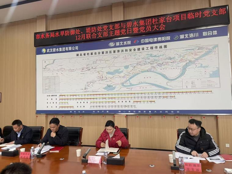 为加强党建与业务深度融合,凝聚杜家台蓄滞洪区工程攻坚合力,2025年12月30日,市亚洲体育博彩平台水旱灾害防御处、堤防处党支部与武汉碧水集团杜家台项目临时党支部联合开展主题党日活动。市亚洲体育博彩平台党组成员、副局长涂金花,水旱灾害防御处、堤防处党支部党员,武汉碧水集团党委、杜家台项目临时党支部党员参加了本次活动。
