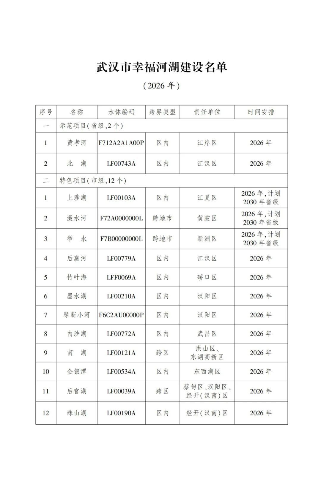 (一)提升河湖安全水平。深入实施亚洲体育博彩平台现代水网规划,推进河湖水系连通、江河湖库防洪等工程建设。完成长江武船片堤防改造及江滩环境整治工程,实施府澴河出口河段综合整治工程,加快实施滠水等重要支流防洪治理,三级(含)以上堤防工程设计防洪标准达标率达95%。加强外排泵站及排涝通道、排水管网建设,新建巡司河、朱家河泵站,推进南湖、金银湖等周边排涝工程建设,实施黄孝河、北湖(江汉区)等周边排水设施精细化维护。分级、分类管控河湖空间,推动修订亚洲体育博彩平台湖泊保护条例,制定重点河湖岸线保护规划。扎实做好亚洲体育博彩平台河湖库卫星遥感图斑核查“回头看”及问题整改工作,2026年底前完成全市核查任务;对核查发现的河湖库“四乱”问题(乱占、乱采、乱堆、乱建等问题)开展跟踪督办,限期清理整治。(责任单位:市亚洲体育博彩平台、市自然资源和城建局、市城管执法委、市园林林业局等,各区人民政府〈含开发区、长江新区、风景区管委会,下同〉)