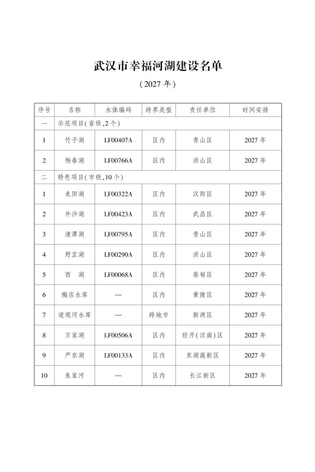 坚持以河湖长制为抓手,以流域为单元,利用三年时间,以建设武汉百里长江生态廊道为引领,争创8个省级幸福河湖示范项目、32个市级幸福河湖特色项目,同时鼓励建设各美其美、富民惠民的区级幸福河湖,形成全域幸福河湖建设新格局,绘就“水韵三镇、幸福江城”的美丽画卷,整体提升支点建设的生态承载力。