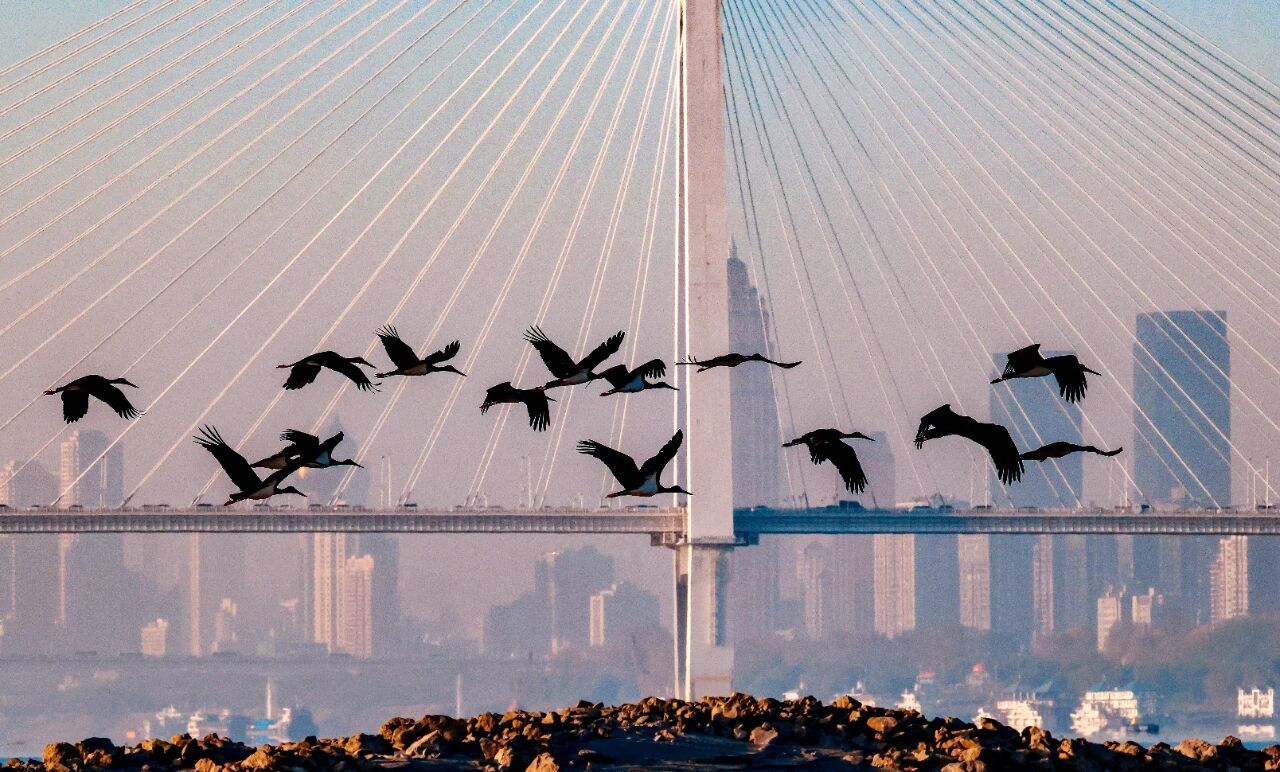 长江禁渔护生态、净滩行动除隐患、市民携手守家园,如今的武汉江清滩净、草木繁茂。黑鹳的年年归来,正是这座城市以生态为笔,写下的最美答卷。