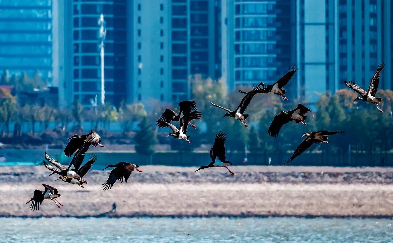 《黑鹳来江城》城市摄影队 邱鸿 摄于武汉天兴洲