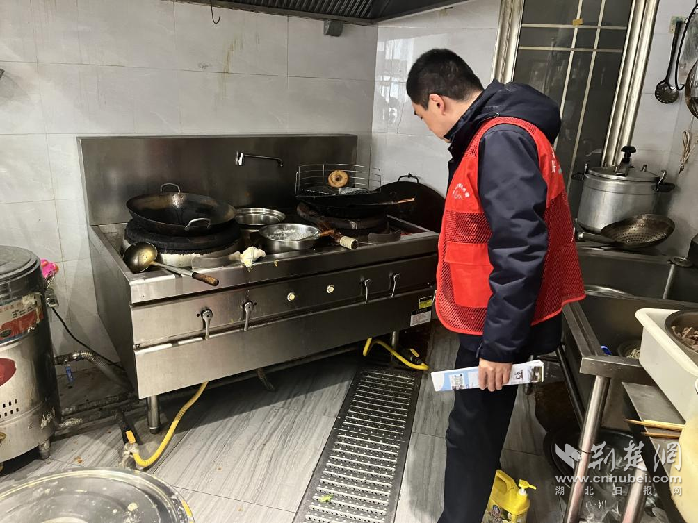 工作人员重点排查商铺后厨油水分离器运行。