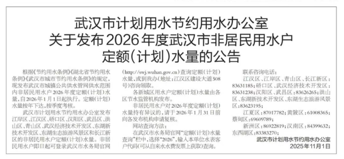 水务动态 | 我市发布2026年度全市非居民用水定额(计划)水量