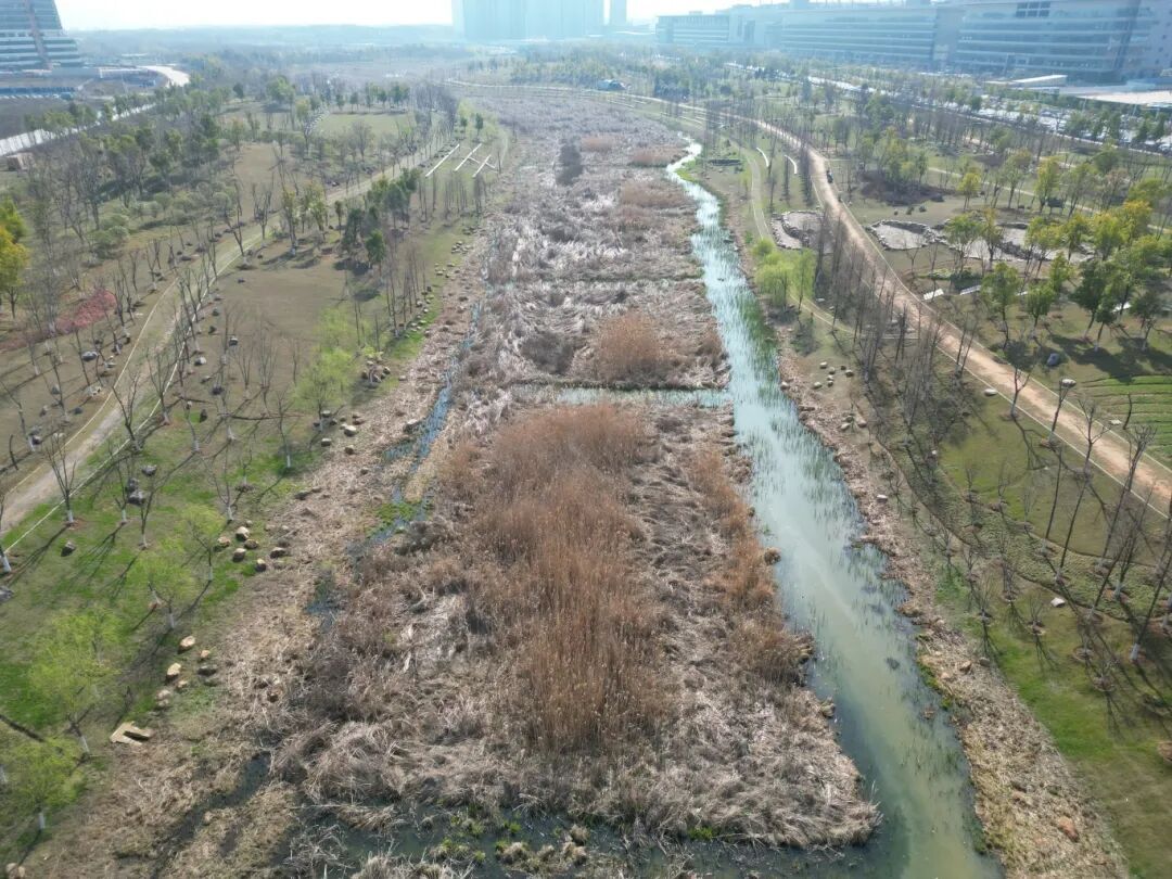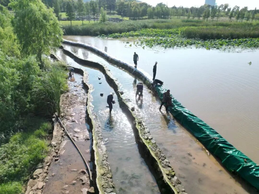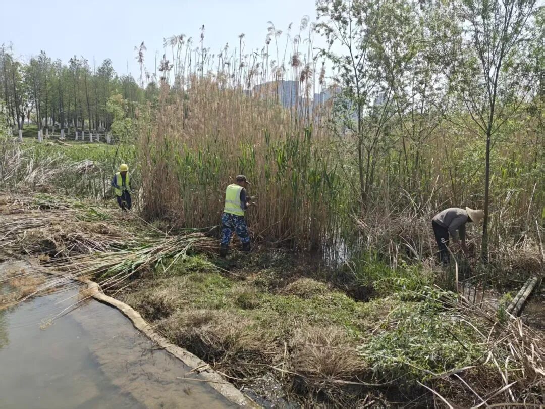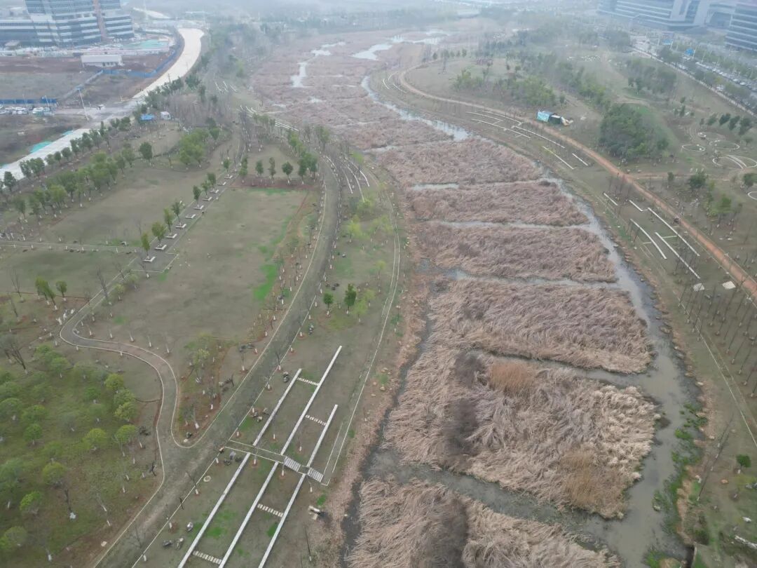 通过系统清理泛滥芦苇,并设置沿岸隔离带与防火隔离带,有效恢复了河道原有行洪断面,显著提升了河道过流能力,还预防了秋冬干燥季节芦苇容易自燃引发的火灾风险。为光谷未来科技城、国家存储器基地等关键产业设施筑起一道可靠的安全防线。同时,今年降雨较往年偏少,通过在溢流堰临时加高筑坝进一步强化水位调控能力,扎实推进蓄水保水工作,维护了景观水体的稳定呈现效果。