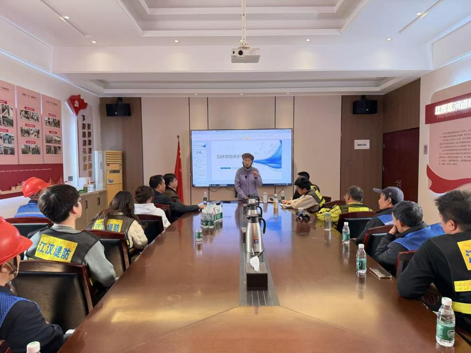 理论授课环节,王秀珍紧扣春季绿化养护关键节点,围绕修剪技法、水肥管理、病虫害绿色防控等实操重点,细致拆解各类植物管护要点,通过精准技术赋能,破解一线管护痛点难点,传授专业化、精细化水务绿化管护知识,实现堤防绿化“防护优先、景观兼顾”的功能定位。