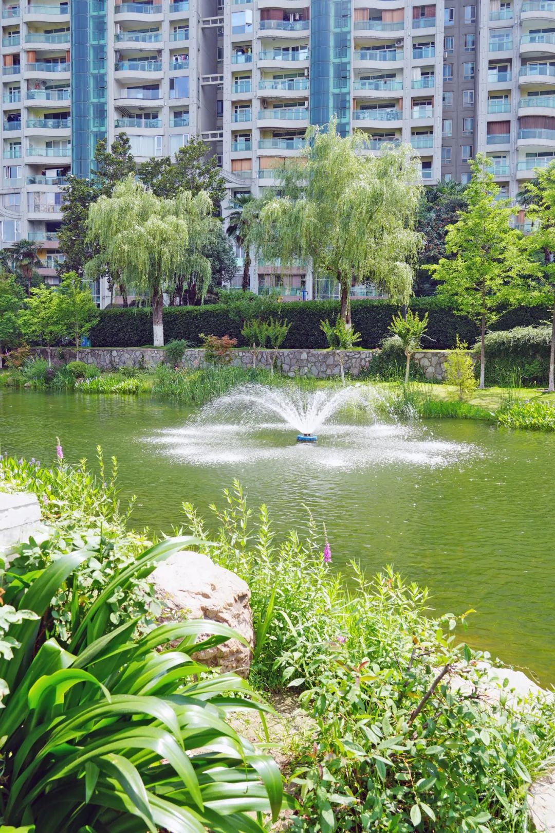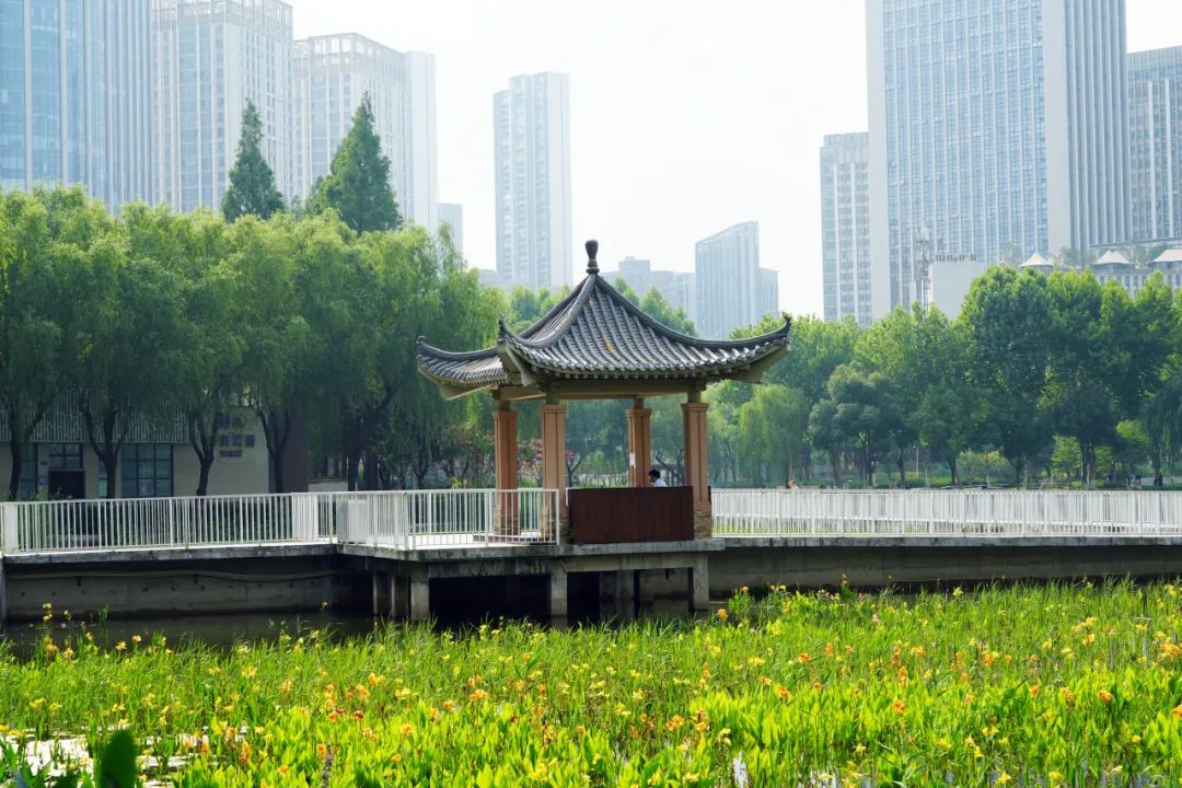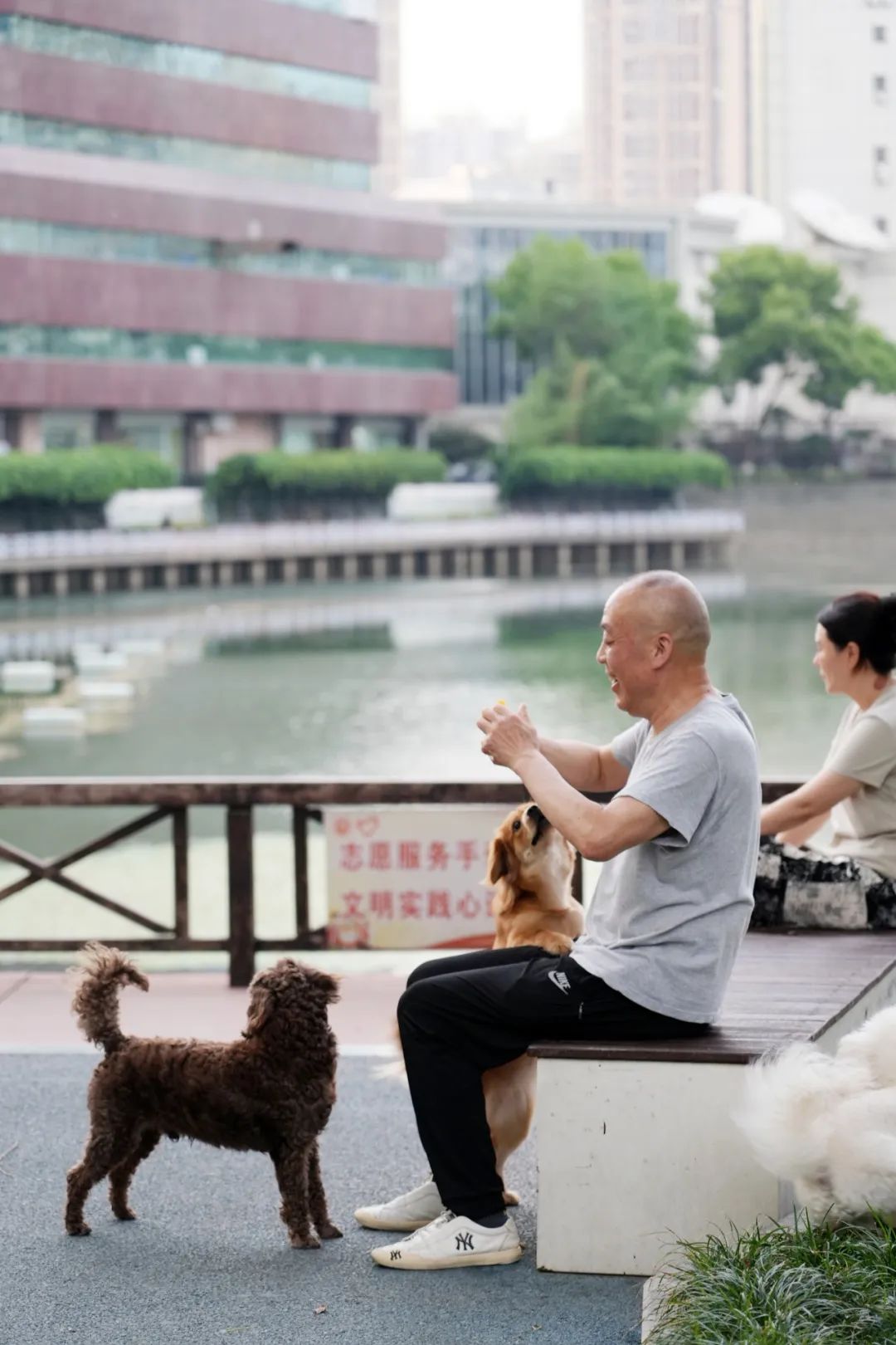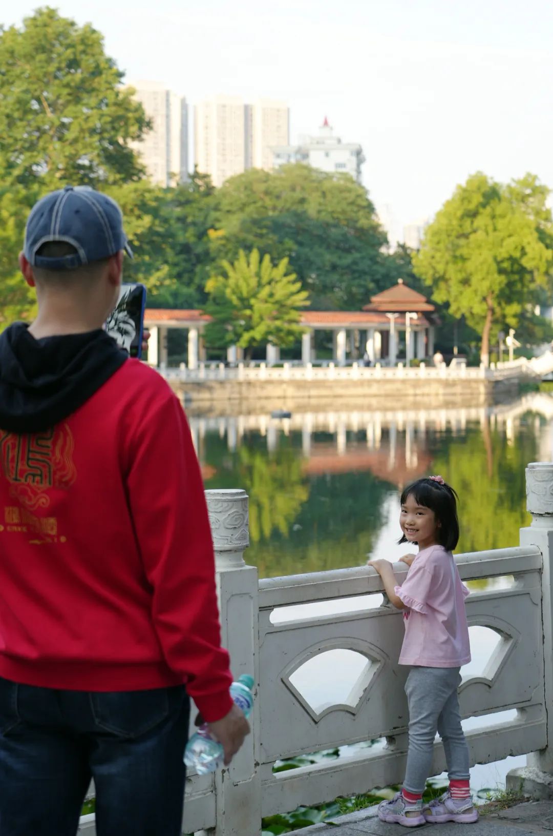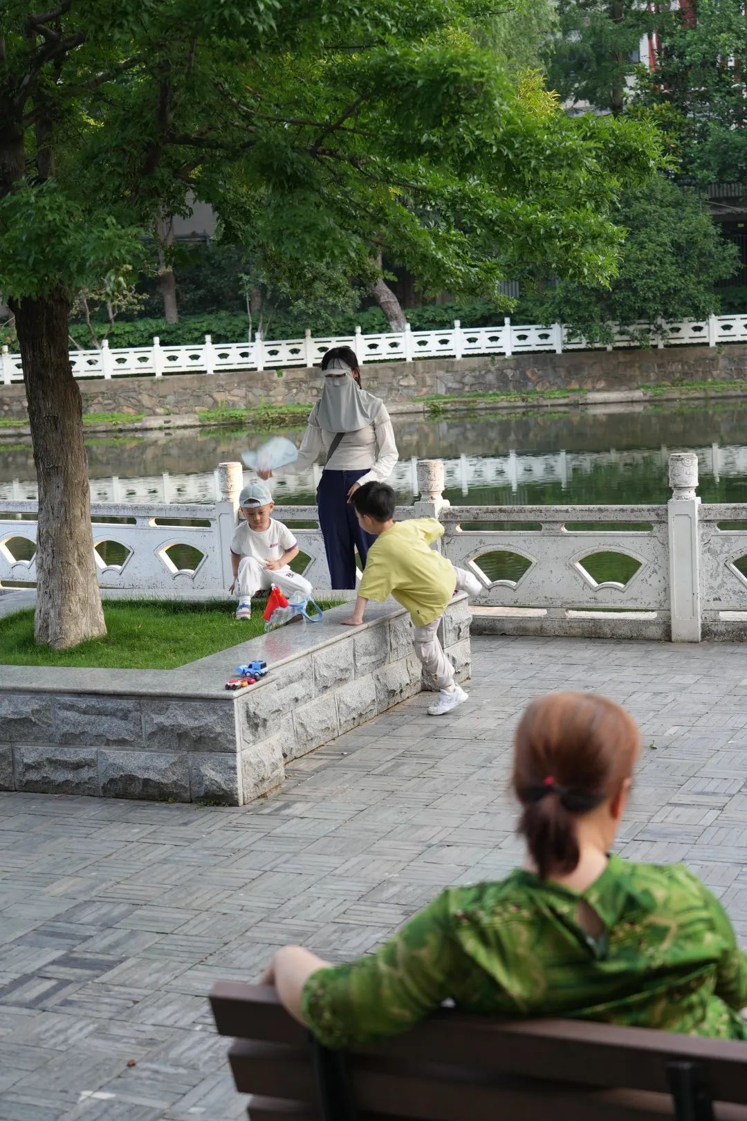 下班了的青年人或陪着放学的孩子共享亲子时光,或看鱼儿在水草间穿梭让紧绷的神经渐渐舒缓。退休的老年居民则将大把的休闲时光,用在打太极、跳广场舞、公园踱步锻炼身体上。周边绿树环抱,晚风自湖面吹来,组成一幅流动的市井水墨画。