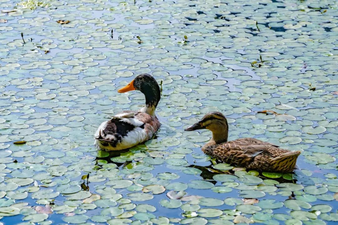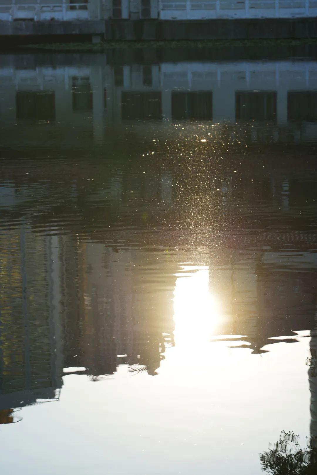 3.5公顷的水域曾因自净能力弱面临水质挑战,如今通过 “三分治七分管” 模式,实现水体透明度+水质双提升。正门入口处的小塘尤为澄澈,水草清晰可见。傍晚时,夕阳余晖透过屋舍间隙落入湖面,细碎的金光好似浮在空中。