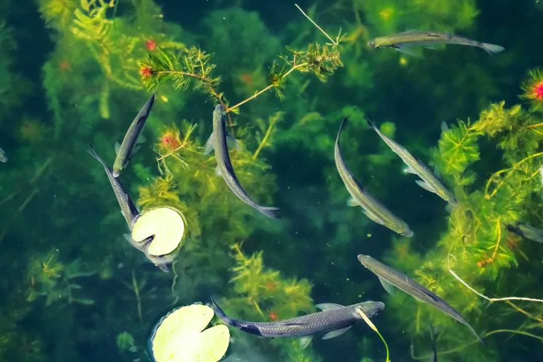 2022年水体提质工程后,菱角湖水生态系统持续保持健康稳定,部分月度水质达Ⅲ类标准,人工湿地里的美人蕉与鸢尾花开成海,“水下森林”中游鱼在水藻间灵巧穿行。